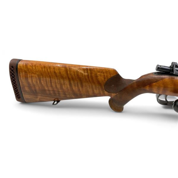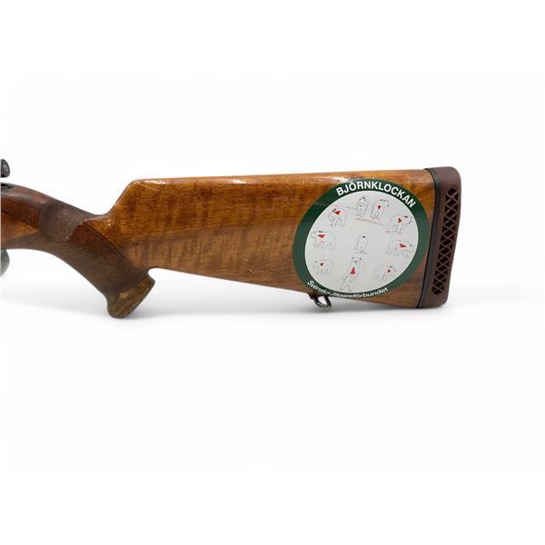 Husqvarna M96 Bolt Action Rifle 9.3X62 21" Barrel Wood Stock. Internal magazine with base plate. Fixed rear sight, no front sight. Receiver drilled and tapped with bases installed. Custom wood stock features rubber butt pad. Oversize bolt knob installed on bolt. This is a non-restricted firearm.