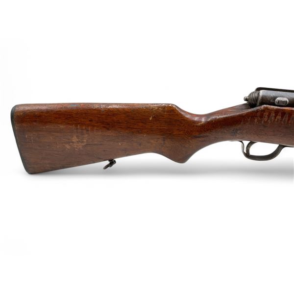 Stevens Model 58 Bolt Action 12Ga Shotgun 2.75" Chamber 26" Barrel Wood Stock. Bead sight, fixed choke. Comes with one detachable magazine. Plastic butt plate broke in middle. This is a non-restricted firearm.