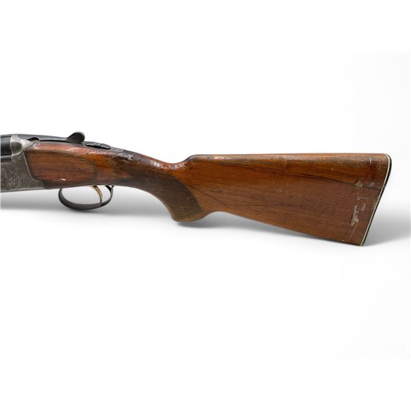 Techni-Mec Over Under Shotgun 12Ga 2.75" Chambers 28" Barrels Wood Stock. Vent rib; missing bead sight. Fixed chokes. Wood forend cracked and broken, rear stock cracked at receiver and butt plate. This is a non-restricted firearm.