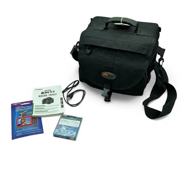 Canon EOS Rebel T3 Digital Camera with Canon Zoom Lens EF-S 55-250mm 1:4-5.6 IS Lens, Canon Zoom Lens EF-S 18-55mm 1:3.5-5.6 IS Lens, 16 GB SD Card, Canon LC-E10 Battery Charger, Spare Canon Battery and Lowe Pro Camera Bag