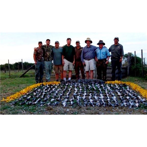 Three hunters - 2 full days of unlimited High Volume Dove Shooting, 1 full day of Pigeon Hunting and 1 full day of Fishing