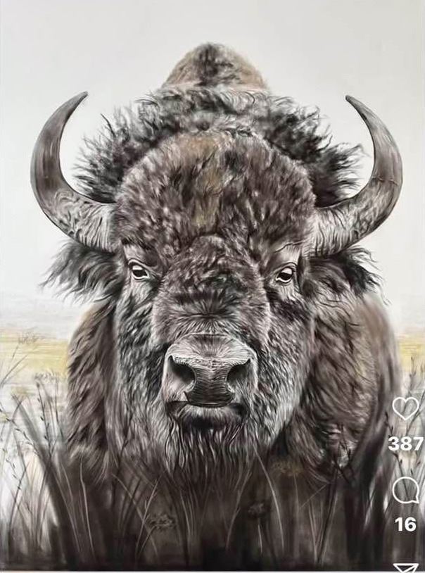 Note: The first photo is the actual piece of art that is for sale. Elena Johnson, a realism artist based out of Idaho will create an original charcoal on canvas during our Saturday night banquet on June 7, 2025.