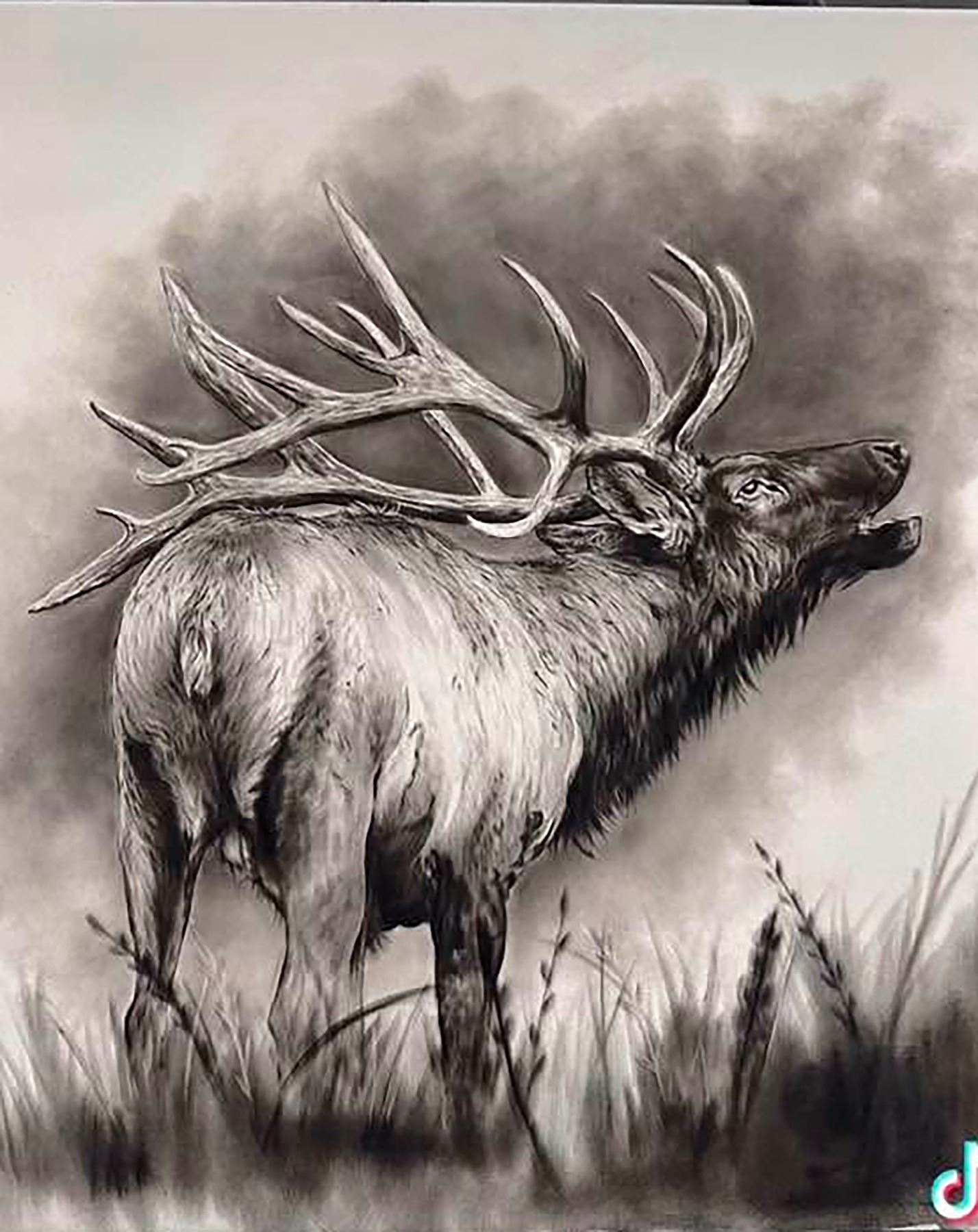 Elena is creating spectacular original art, and her career is just beginning. Her work has been featured with the Wild Sheep Foundation Eastern Chapter, Iowa Chapter, the Mule Deer Foundation and Wishes for Warriors "Eyes of War" series, raising over $68,000 for our veterans, to name a few.