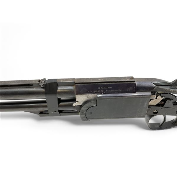 Tikka M77K Over Under Combination Gun 12Ga And 222Rem 25" Barrels No Stocks. Fixed front sight, flip down rear sight. 12Ga barrel has fixed choke and 2.75" Chamber. Double triggers. No forend or rear stock; may be missing other parts. This is a non-restricted firearm.