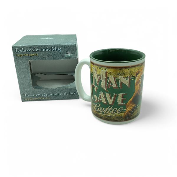 River's Edge Deluxe Ceramic 'Man Cave Coffee' Mug, New