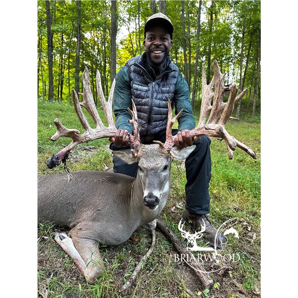 $5,600 Credit for 2 hunters (daily fees included). Five star Ohio Whitetail hunt for two! Specializing in the worlds largest typical bucks, Briarwood is located in Bellefontaine, Ohio. This donation includes a $5,600 credit towards a 3 day/4 night estate hunt for two Northeastern Whitetail Deer.
