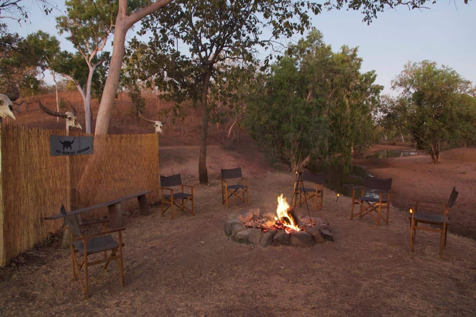 New canvas tents, Elevated beds, Toilets, Hot showers, 240 volt power Kitchen and dining area with chef, Wifi and satellite television, Open fire pit.