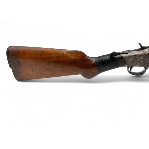 Harrington & Richardson Single Shot 12Ga Shotgun 2.75" Chamber 30" Barrel Wood Stock. Fixed choke. Rear stock broken and taped at grip. Plastic butt plate broken and missing half. This is a non-restricted firearm.