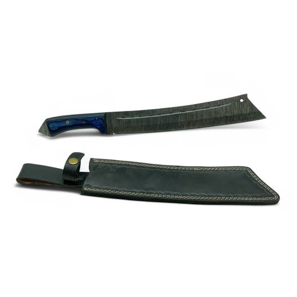 Fixed 11" Damascus Blade Knife with Leather Belt Sheath