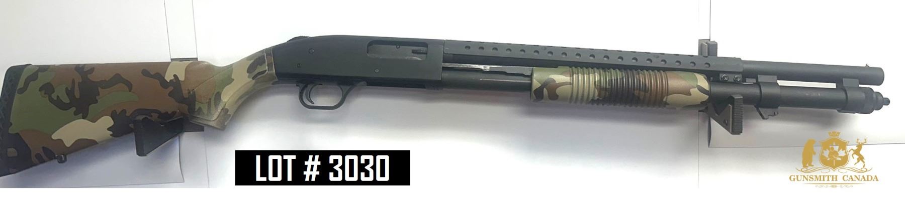 Lot 3030 MOSSBERG MOD. 590 WOODLAND CAMO, 12GA PUMP ACTION, 20" BARREL