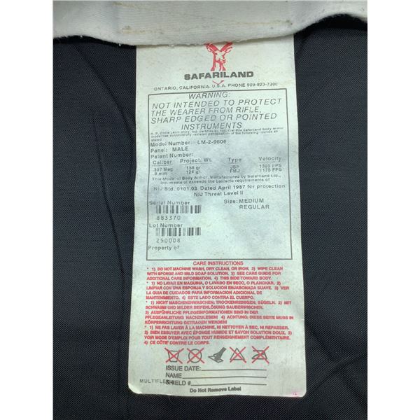 Safariland Ballistic Vest Size Medium with Level II Plates