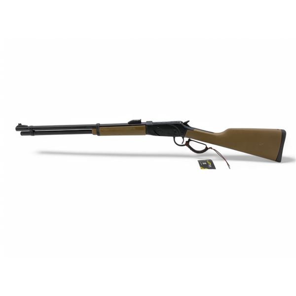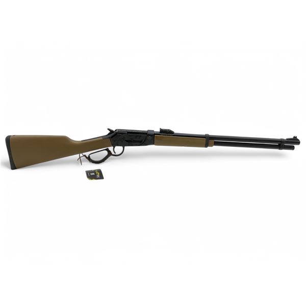 Revolution Armory Lever Action 410 Shotgun 20" Barrel Black With Tan Stock, New. Tubular magazine, leather wrapped loop. Fiber optic front sight, adjustable rear sight. Comes with a removable choke. This is a non-restricted firearm.