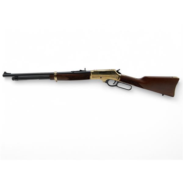 Henry Side Gate Lever Action Rifle 45-70 Govt 19" Barrel Brass Receiver Wood Stock, New. Tubular magazine, brass butt plate. Fixed front sight, adjustable rear sight. This is a non-restricted firearm.