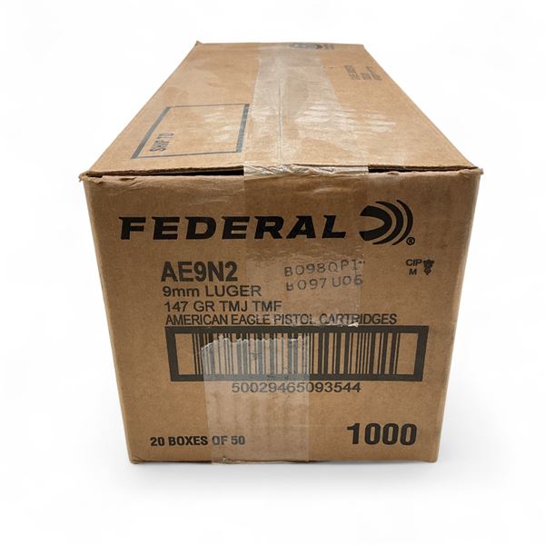 Federal American Eagle 9 mm 147 Grain TMJ Ammunition, 1000 Round Case