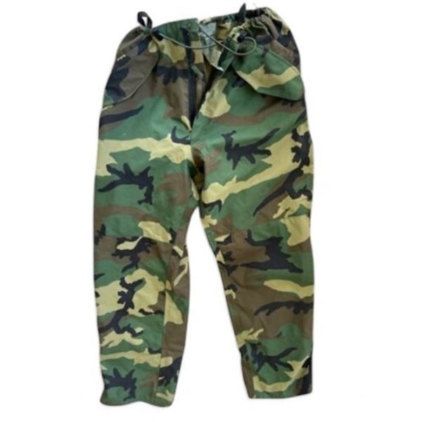 U.S. Issue ECWCS Gore-Tex Pant, Woodland, Stay protected and prepared in foul weather conditions with the U.S. Issue ECWCS Gore-Tex Pant. This genuine issue pant is designed to withstand harsh elements of rain, snow, cold, and wind, keeping you dry and comfortable. Designed to go over your pants as needed, with a pull-string belt, hook and loop ankle, and lower zipper, you can easily adjust the fit and get in and out easily. The pants are equipped with pass-through pockets making getting to your original pockets are easy. Rated for temperatures between 40° and -6°, these pants are a great shell option for cold and wet climates. Trust in the U.S. Issue ECWCS Gore-Tex Pant to keep you protected and comfortable in any outdoor adventure.