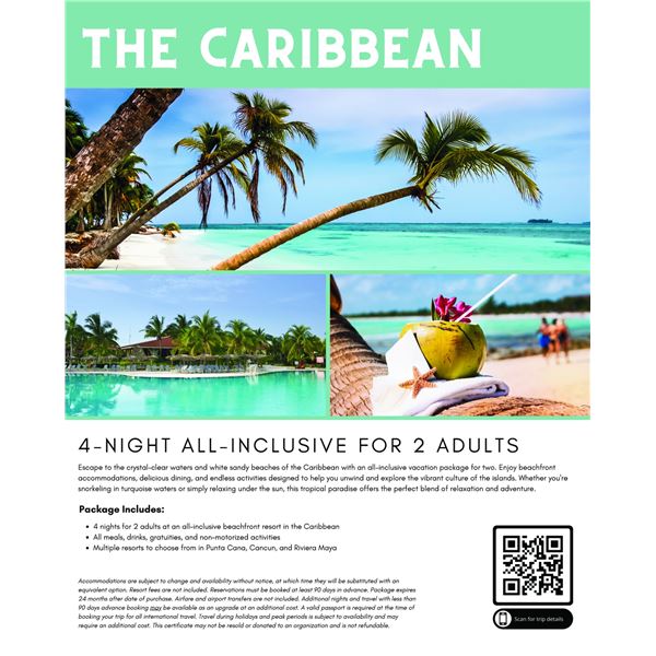 - 4 nights for 2 adults at an all-inclusive beachfront resort in the Caribbean