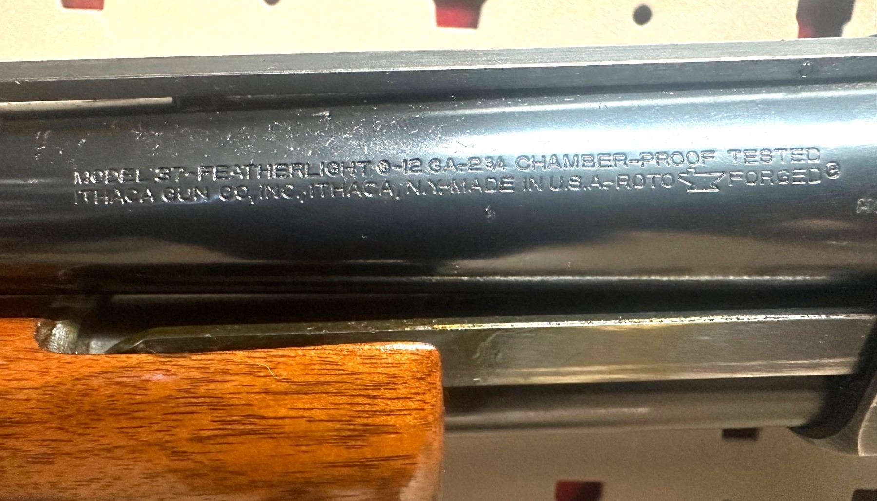 ITHACA MOD 37 FEATHERLIGHT,12GA X 2"3/4, PUMP ACTION SHOTGUN - 28" BARREL (FORGED BARREL)