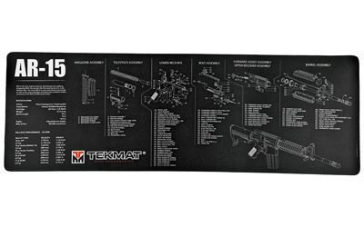The TekMat has a soft thermoplastic fiber surface that will protect your firearm and won't stain from grease and oil. The neoprene rubber substrate gives TekMat the padding you need to keep your gun, as well as your kitchen table, safe from dings and scratches. And to take it one step further, TekMat was designed with an exploded parts diagram of your firearm so you could take the gun apart to clean it, as well as put it back together without ever having to try and find the owner's manual. TekMat's use a dye-sublimation printing process which embeds the ink into the surface material so you don't have to worry about the printing coming off the mat.
