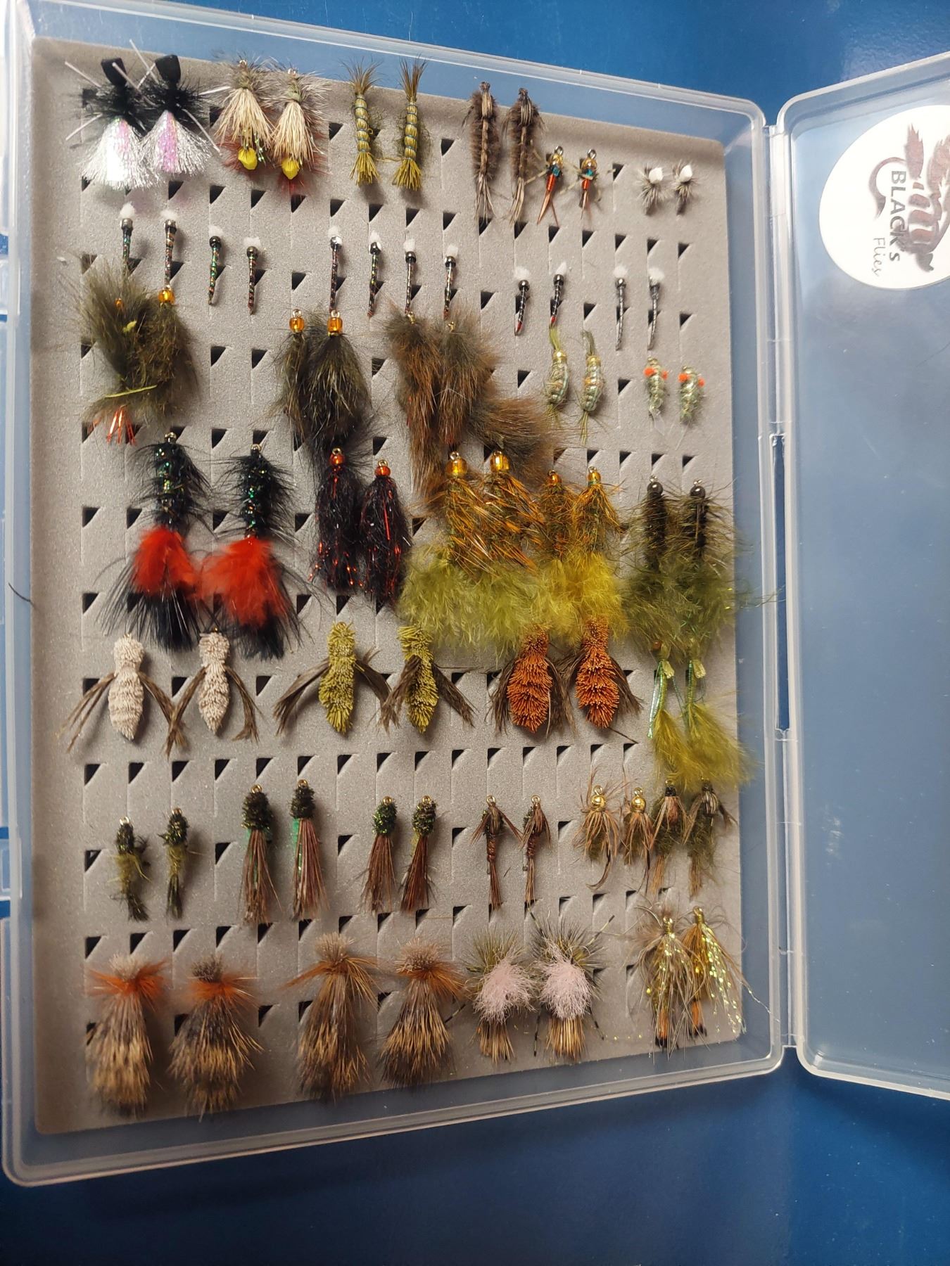 Box of flies: 72 flies in fly box.