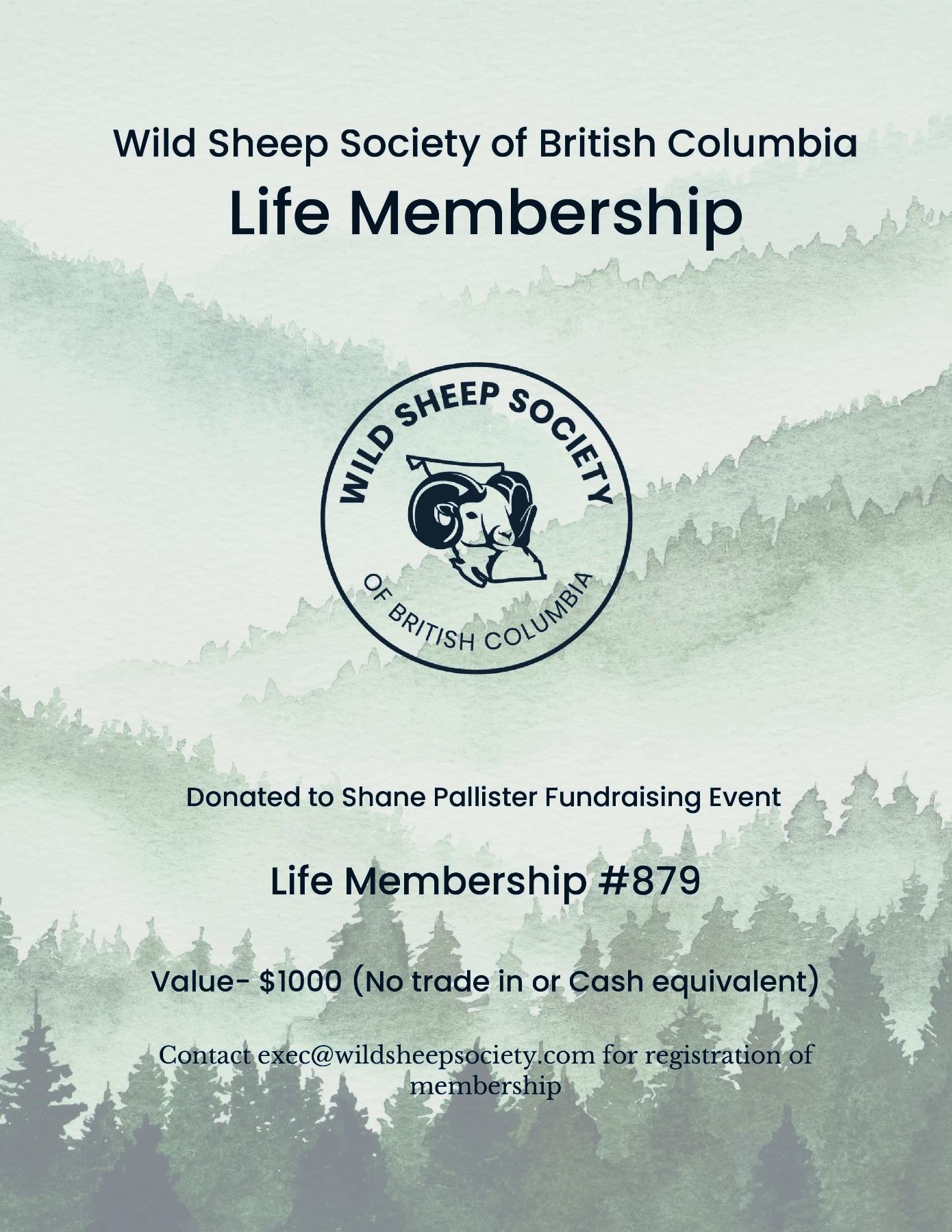 Lot 5 Wild Sheep Society of BC Life Membership