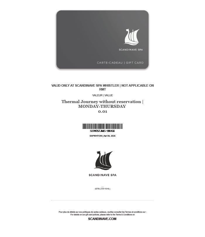 Lot 43 2 x Thermal Journey Access Certificates from Scandinave Spa Whistler
