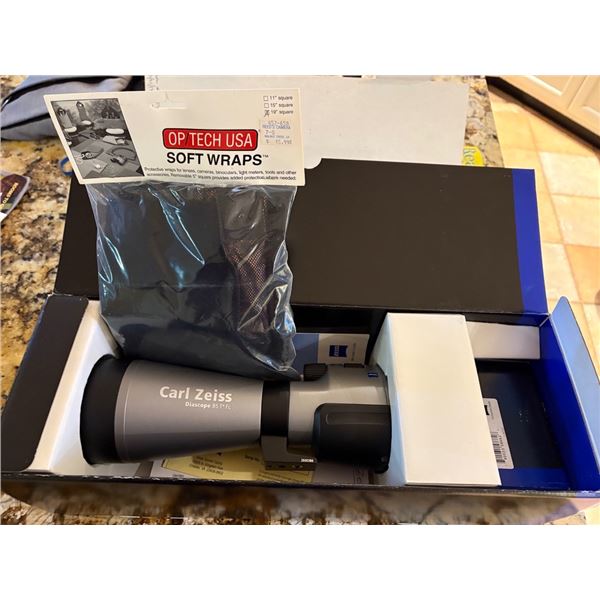 You won't find a better chance at a top-notch "as new" condition spotting scope! The 85 mm fluoride-coated objective lens has enormous clarity and light-gathering capability, the 20-60x eyepiece covers a broad spectrum of viewing needs, and Carl Zeiss quality is evident in every aspect. Zeiss literature states that a large improvement in image quality was achieved by design changes that minimized stray light, resulting in improved contrast. This estate scope comes as new, with all paperwork, sleeves, and box. The prior owner was well-known for his meticulous care of his equipment.
