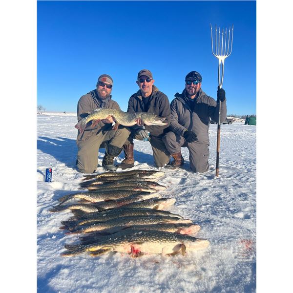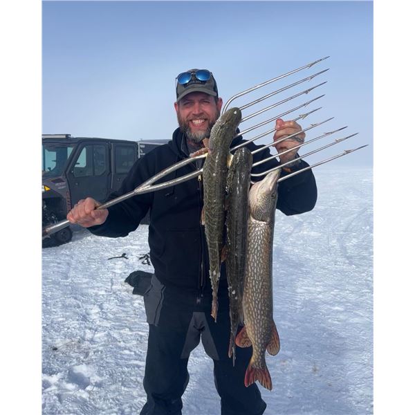 Come Spear the mighty Northern Pike, or ice fish for Walleye and Perch! On this winter adventure, you will be warm inside our huts with plenty of beer and brats to go around! This is a party on the ice! Come hang out with us in the snow!3 days/3 nights of ice fishing for 2 in Bismark ND.