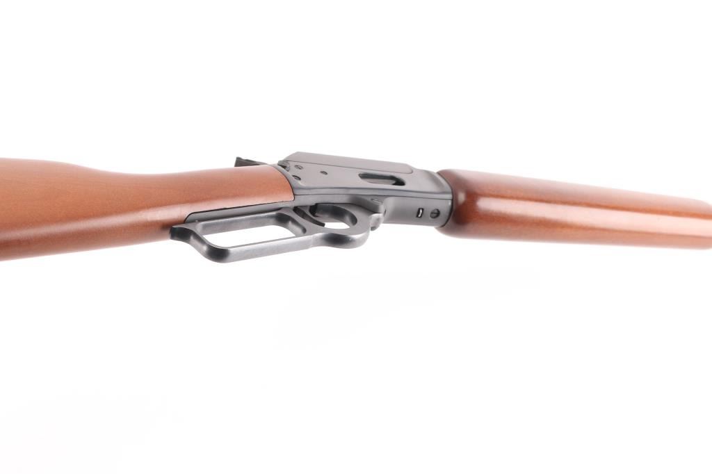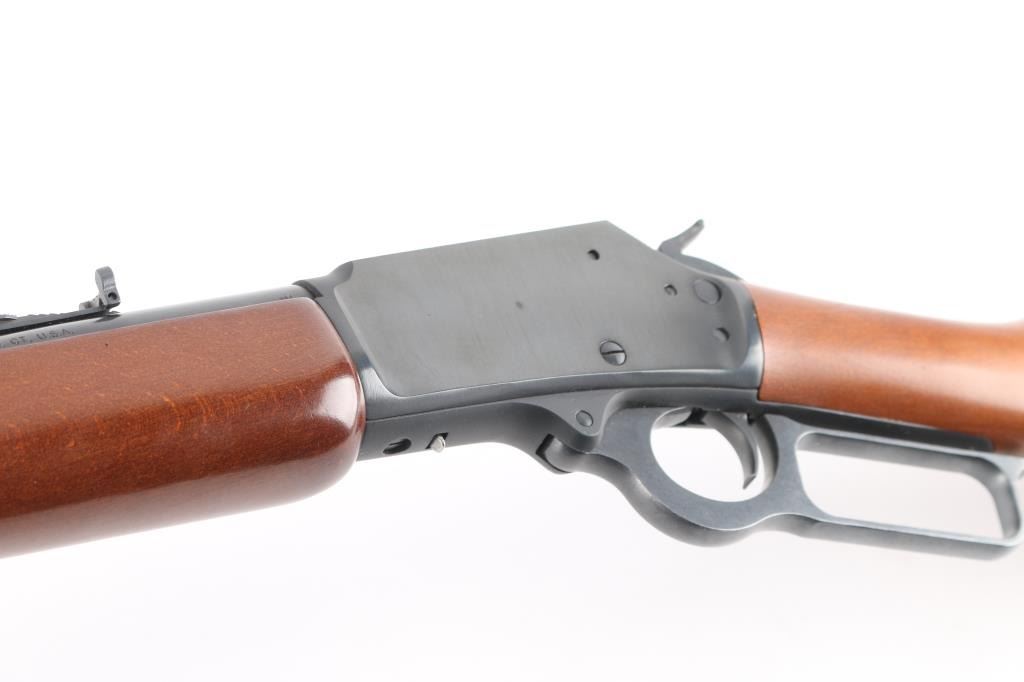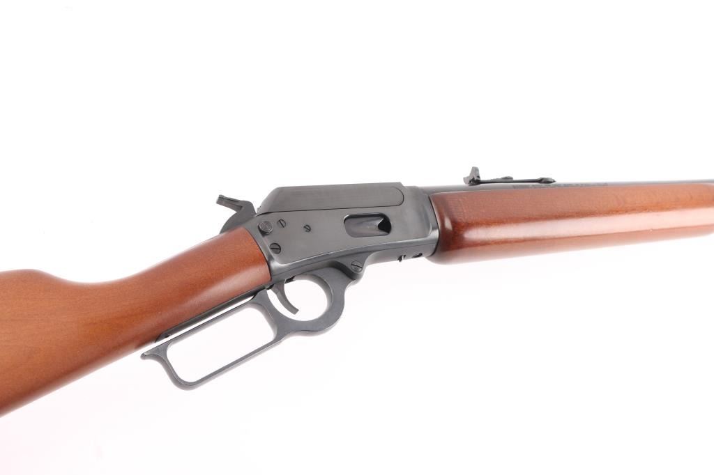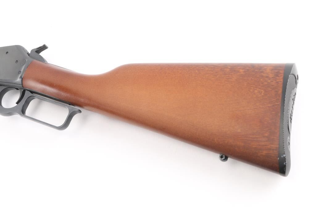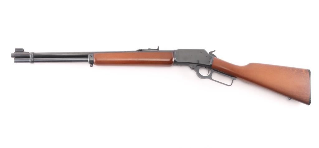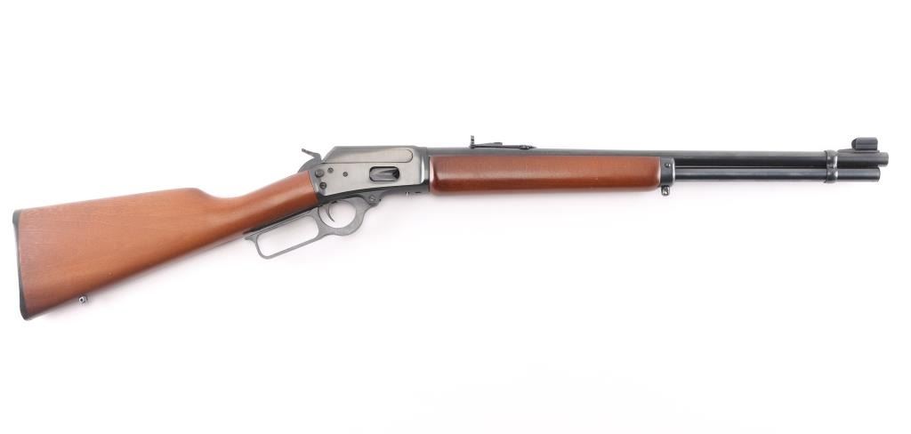 Lever-Action. Carbine configuration.18" round barrel with full length tube magazine, hooded post/bead front and semi-buckhorn rear sporting sights. "JM" stamped on lower barrel. Straight walnut stock/forearm. Black plastic factory buttplate. Receiver drilled/tapped for scope mount. Smooth trigger. Action is crisp/tight. Bore is excellent/bright. Blued metal finish and wood are excellent. Like new condition. NRA Condition- Excellent. Modern Firearm.