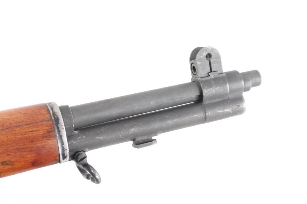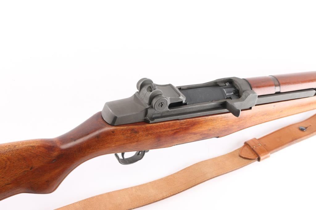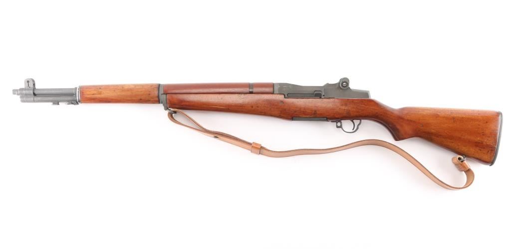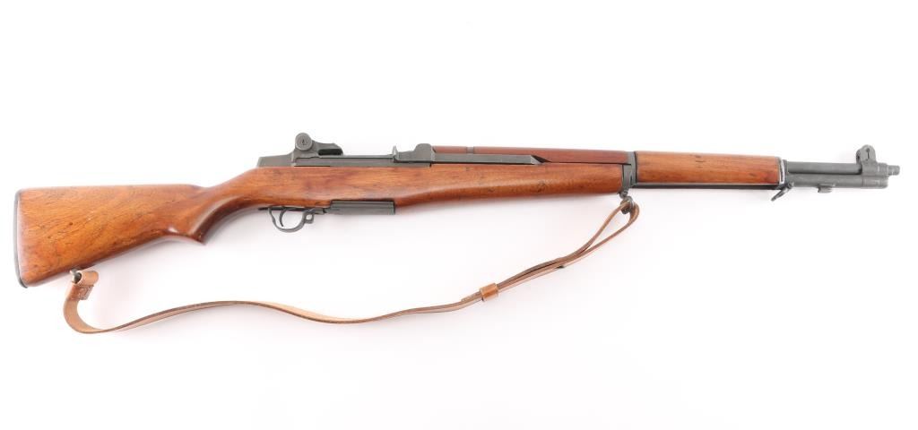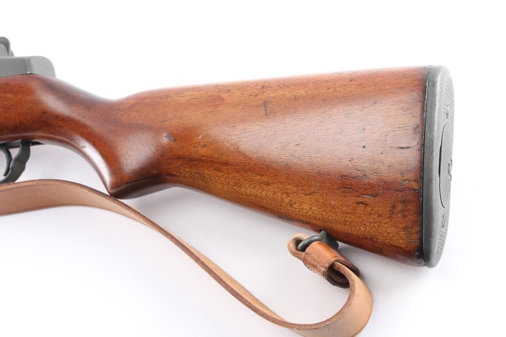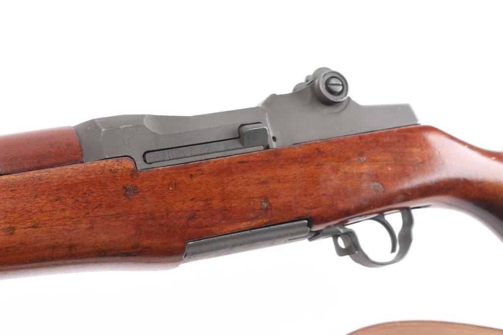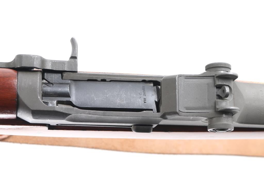SN: 3852817. Blue Sky" This is one of 200,000 purchased back from Korea to a Armory called Blue Sky located in Alexandria, VA. (Stamped on left barrel) where it was refurbished. US military semiautomatic rifle made up of misc. parts. Springfield serial number dates it to May, 1945, DRC rear sights, HRA bolt, front band marked "M" (Winchester) SA trigger housing, op rod, W.R.A. hammer. Receiver Drawing number D 26291 35. Unmarked barrel citadel did not mark their barrels for a time, same with Douglas and Wilson commercial mfgs of replacement barrels. Features parkerized finish, wood stock & hand guards, 24" barrel, adjustable sights with protected front blade & protected rear peep, fixed magazine for en-bloc clip, manual safety. Rear sights and triggerguard are later style. Bore is dark/rough, worn rifling. Metal parts retain 95% medium gray/blue finish. Shows edge losses & handling marks. Wood is very good, good color match among the stock and handguards, appears to be all walnut. Stock cartouches not observed.Condition is NRA Fair/Bore. C&R Firearm.