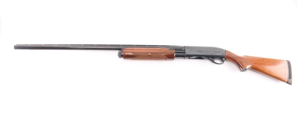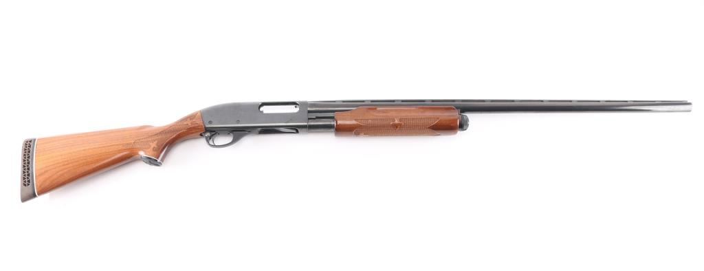 #t160023M. Pump Action shotgun accepts 3" shells. Features 30" vent rib barrel with fixed FULL choke, Steel front bead, manual safety, blued finish, urethane finished wood butt & forend, checkering panels at wrist and forend, factory ventilated rubber recoil pad and grip cap with white spacers. Bore is excellent condition. Metal retains about 94% finish with minor scratches, edge wear and friction wear on mag tube. Wood is excellent with a few very minor scratches. Action is smooth.Condition is NRA Excellent. Modern Firearm.