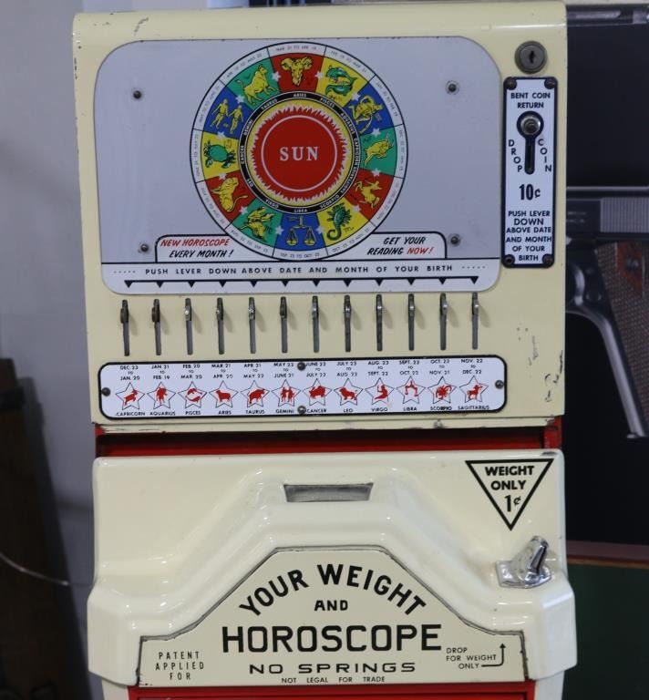 10 Cent Coin-Operated Scale by Watling Scale Co. Chicago . In working condition with key doesnt included the horoscope cards otherwise everything is intact and in good condition.