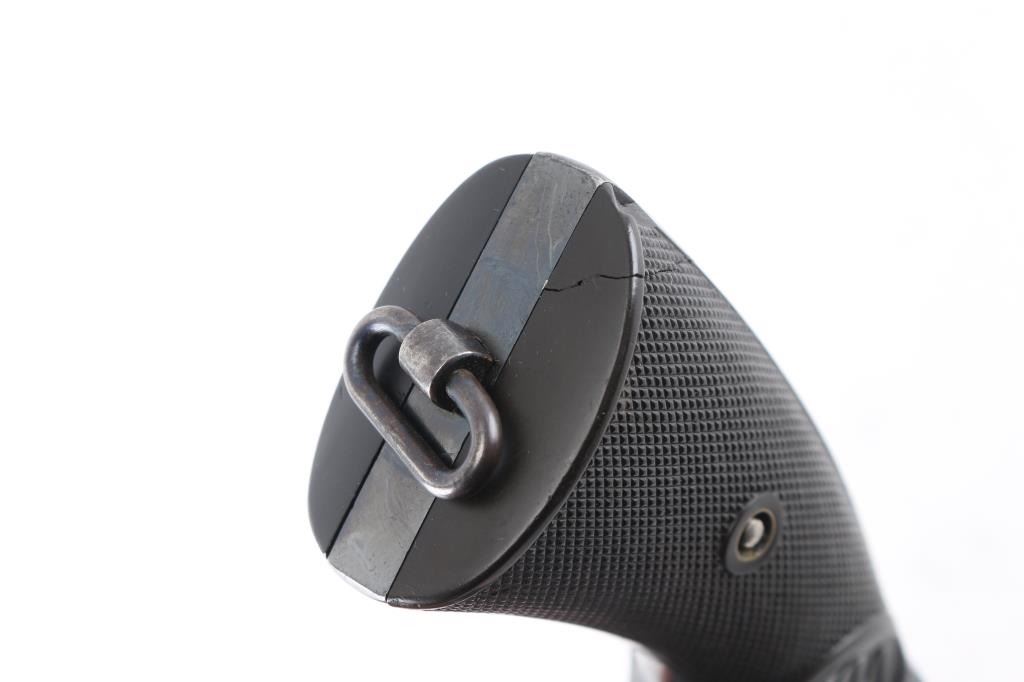 6-Shot Capacity. Large frame revolver produced 1898-1946. This one manufactured in 1924. 7 1/2" barrel, with fixed large blade front, and integral notch rear sights. Two line address/patent dates on barrel. "New Service 45 Colt" on left side of barrel .Rampant colt on left frame. Bore is excellent/bright. Checkered hard rubber grips with "Colt" motifs. Lanyard ring on heel. Blue finish with polished hammer sides. All markings are crisp/clear, Action is smooth with tight lock-up. Grips are overall very good, there is a very small chip/crack out of the lower rear right panel . Blued metal finish is about 90%, with some light holster/edge wear, light patina, tracking on the cylinder and minor scratches and the bore is overall very good/bright, strong rifling with a few very minor spots of light pits. Great condition for its age.NRA Condition-Good. C&R Firearm.