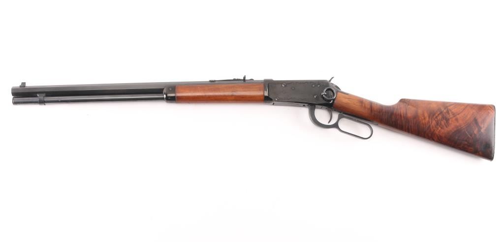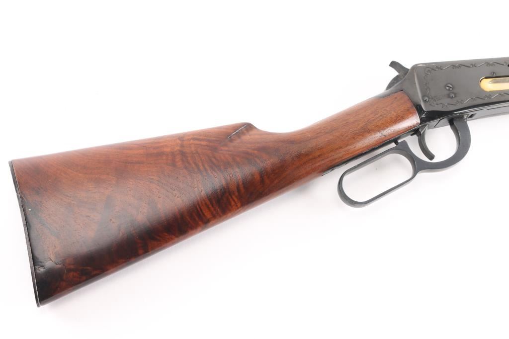 #3002170. Lever-action rifle. This is the Model 94, Winchester classic. Blued finish. 20" heavy octagonal barrel, full tube magazine. Front post/bead, semi-buckhorn sights. Saddle Ring. Bore appears excellent/bright. Laminated walnut stock, and forearm. Checkered steel buttplate. Left barrel marked "Model 94 Winchester Classic". Action is smooth/tight. Etched receiver. gold toned loading plate. Bore is excellent/bright. Action is smooth/tight. Wood is excellent and the blue is about 98% with very minor scratches and minor scuff on bolt. Manufactured 1966.NRA Condition-Excellent. C&R Firearm.