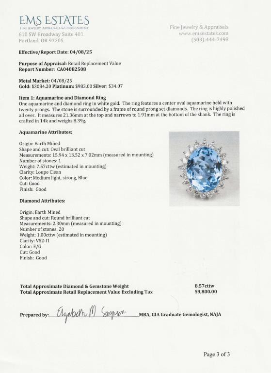 Lot 200a Brilliant “Santa Maria” Aquamarine and Diamond