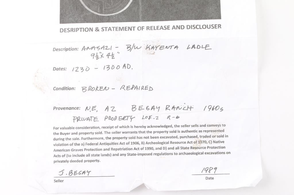 9.5x4.5" 1200-1300AD, repaired, from NE AZ Private property, Coming with certificate of authenticity,