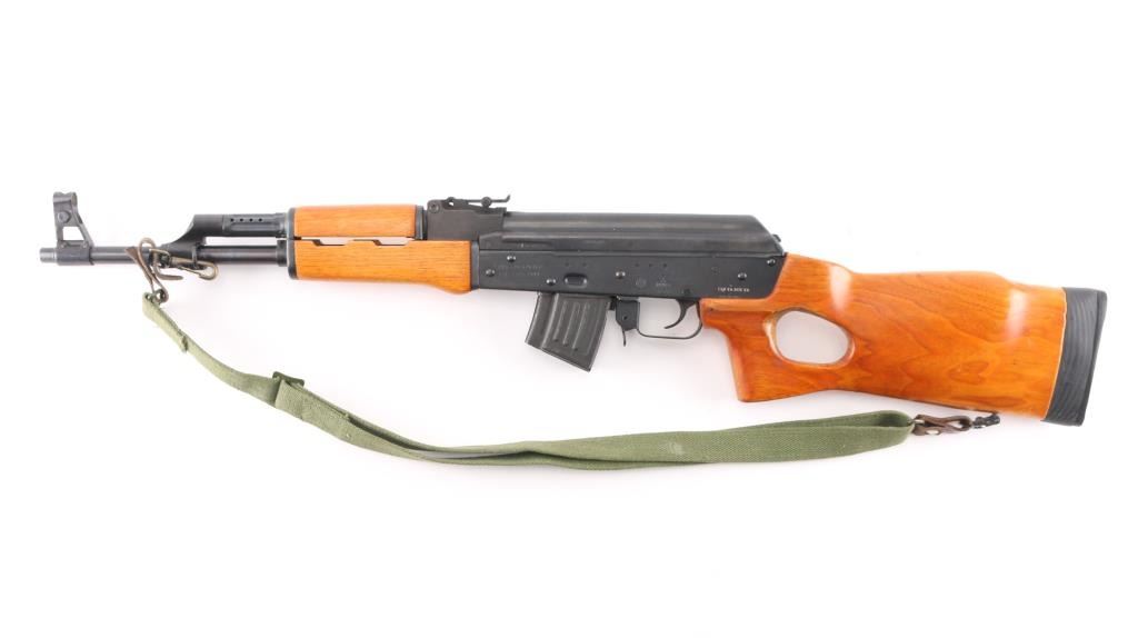 Sn: 94100049. Chinese semiautomatic rifle imported by CJA, VA. Features 16.25" hard chrome lined barrel, military type adjustable sights, manual safety, blued finish, wood stock with thumbhole profile, sling swivels, recoil pad with black wood spacer. Overall condition is excellent with few signs of handling. Bore is excellent/bright Observed numbers match. Includes one 10 round magazine. Correct Issue sling attached.Condition in NRA Excellent. Modern Firearm.