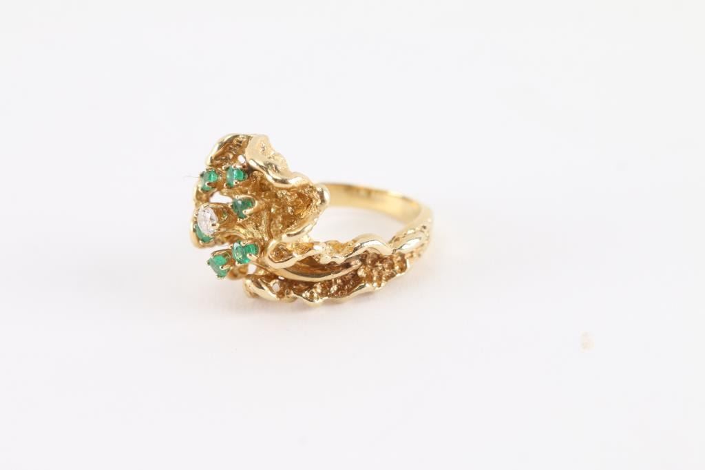 Lot 342 Diamond & Emerald Ring