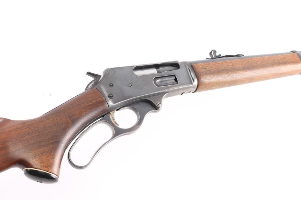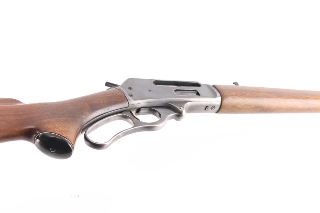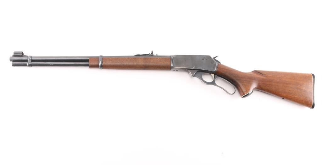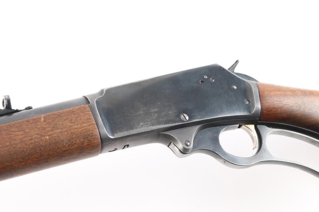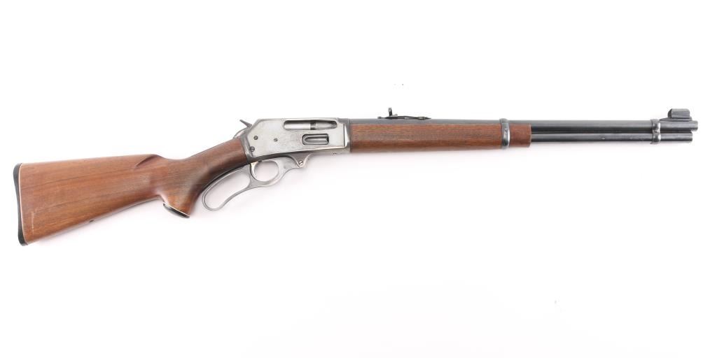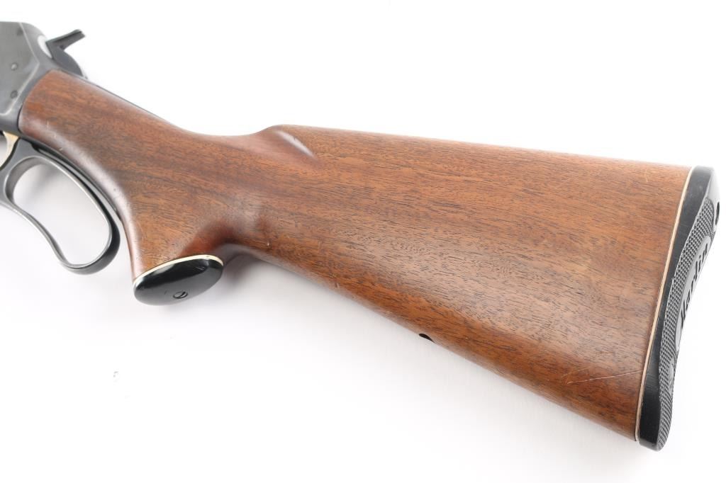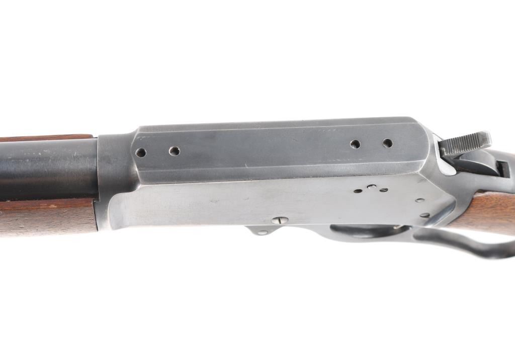 Vintage lever action repeating rifle chambered in 30-30, manufactured circa 1959. Features a blued finish, "JM" marked 20" round barrel, ramped & hooded blade front sight with bead top, elevation adjustable white diamond rear sporting sight, full-length tube magazine, round bolt, smooth gold toned trigger, curved finger lever, grip safety, smooth walnut forend and pistol grip shoulder stock with black grip cap & factory plastic buttplate. Receiver drilled/tapped, no filler screws. Bottom of stock has hole for swivel stud. Rifle exhibits approximately 80% of its original blue finish showing scattered minor scratches, handling and edge wear. Action is smooth, the bore is excellent/bright and the wood stocks are overall very good/sound with a little finish loss on the lower buttstock/grip..Condition is NRA Very Good. C&R Firearm.