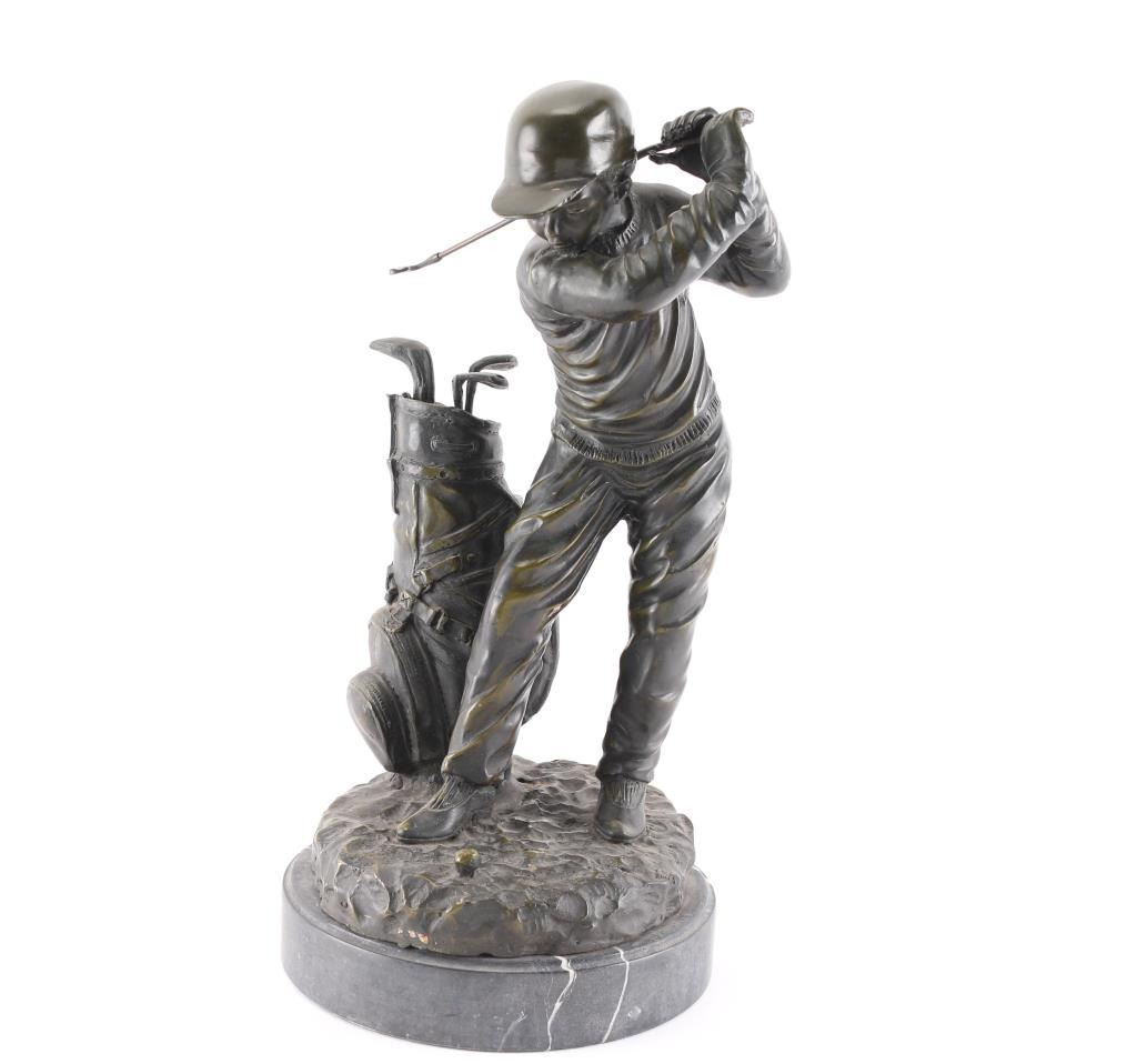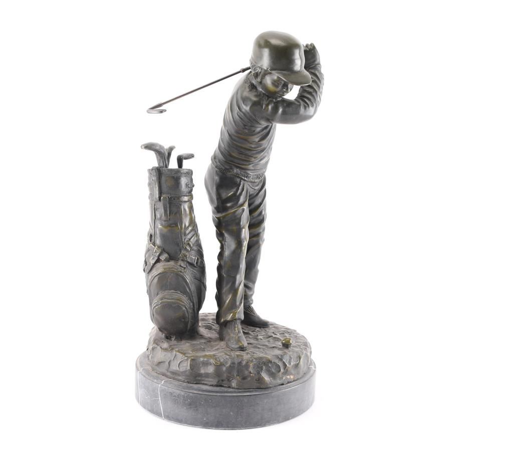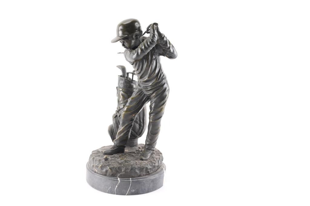 Bronze statue of a Child golfing. Measures 16"H x 9"W x 9"D.***Buyer must arrange shipping***