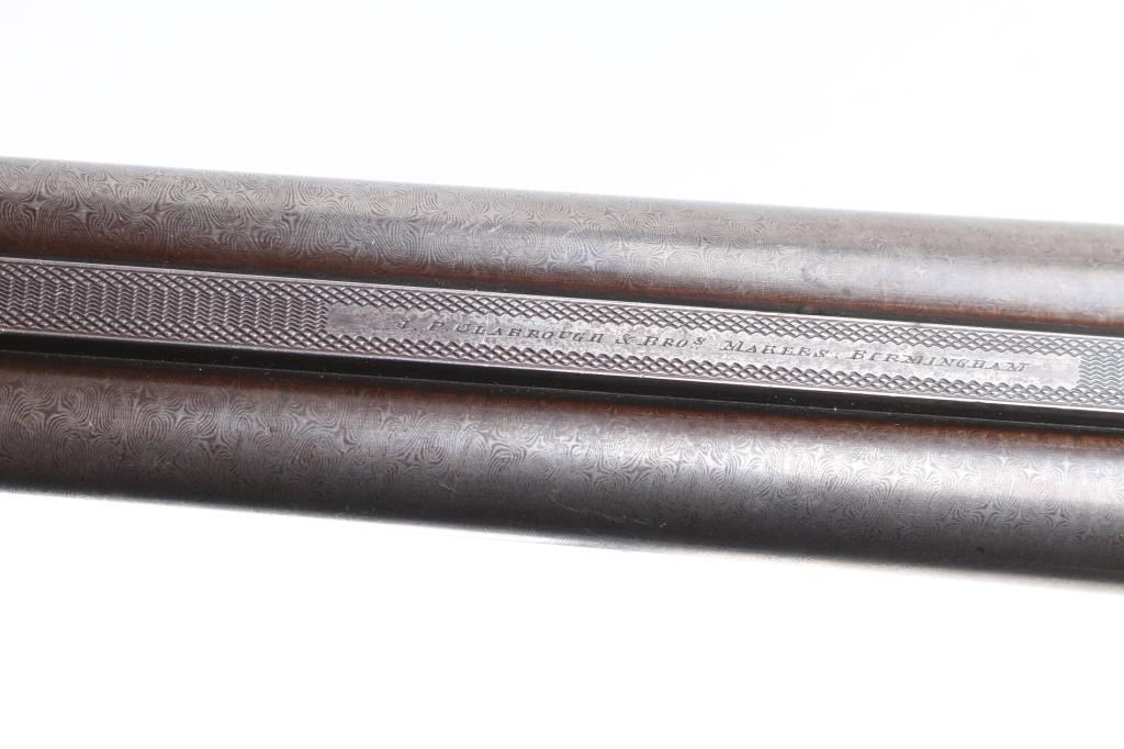 J.P. Clabrough marked makers Birmingham 12GA double side lock shotgun #10378 c.1906, Illustrated in book by Larry Shelton on this maker (pg. 184). Listed as 2-1/2", medium grade, 7-1/4 pounds, automatic safety back-action (side locks), dolls head, James Woodward auto-ejectors, two locking bolts under BBLs. Noted as Canadian sold gun with 611 trigger guard. 40% engraved. other minor features listed and a cost of $52 approx. The BBLs measure 30" and gun is 47" overall with original butt plate. 14-1/4" pull. 50-60% original finish. Wood good plus with small chip missing at rear of left plate area. Tight with good bores. Choked full and full. An attractive double with good provenance. Condition is NRA Very Good**C&R Firearm**