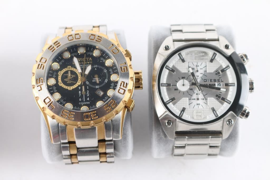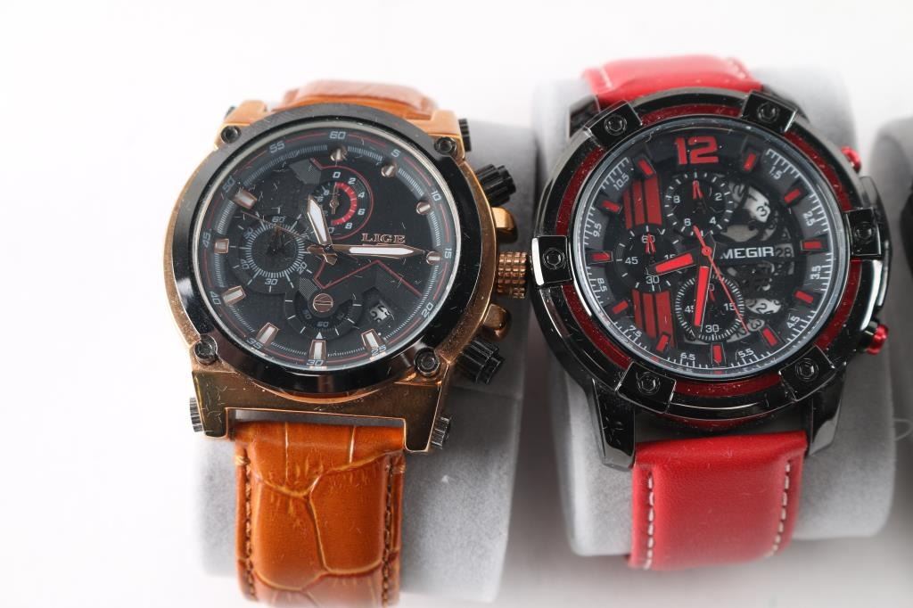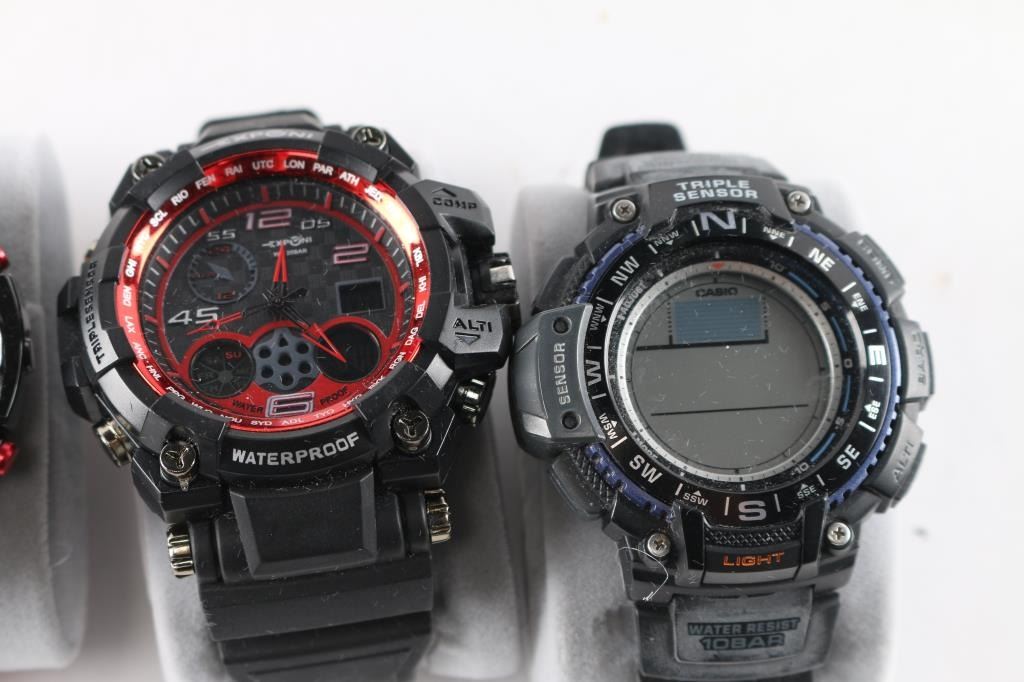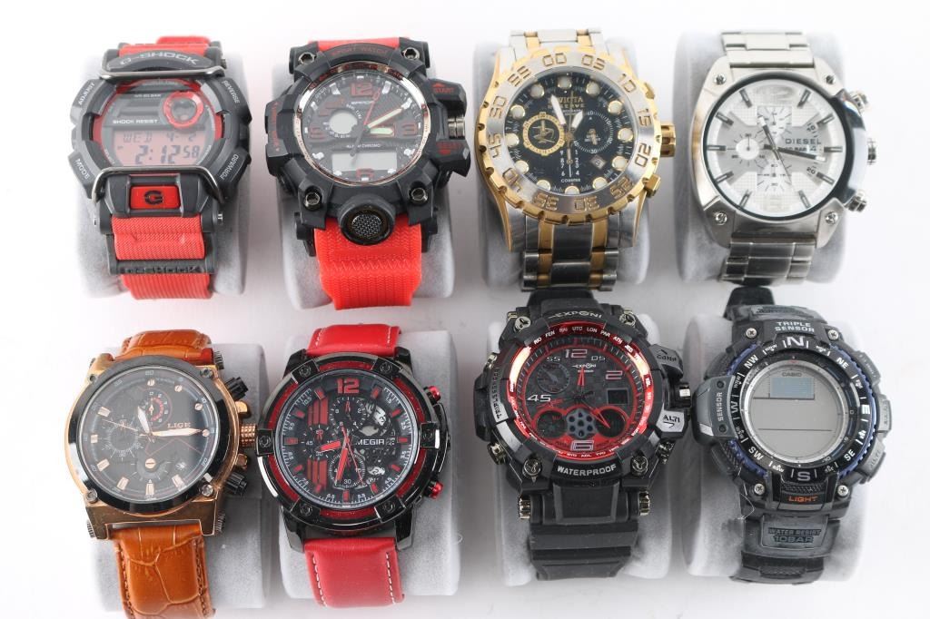 Includes: Lige Chronograph (gold tone); Samoa digital watch; G-Shock GD-400; Invicta Reserve 0816; Diesel chronograph DZ-4203; Exponi 3237; Megir 2097; Casio SGW-1000.