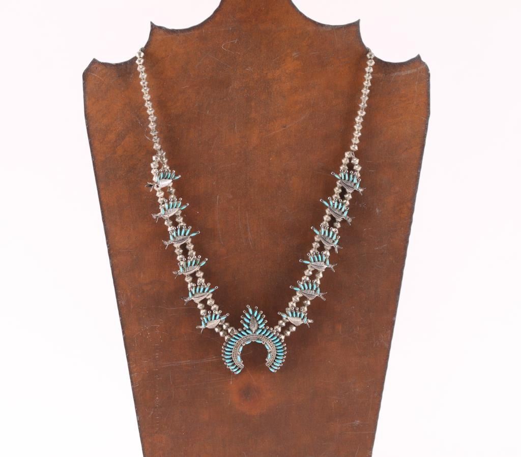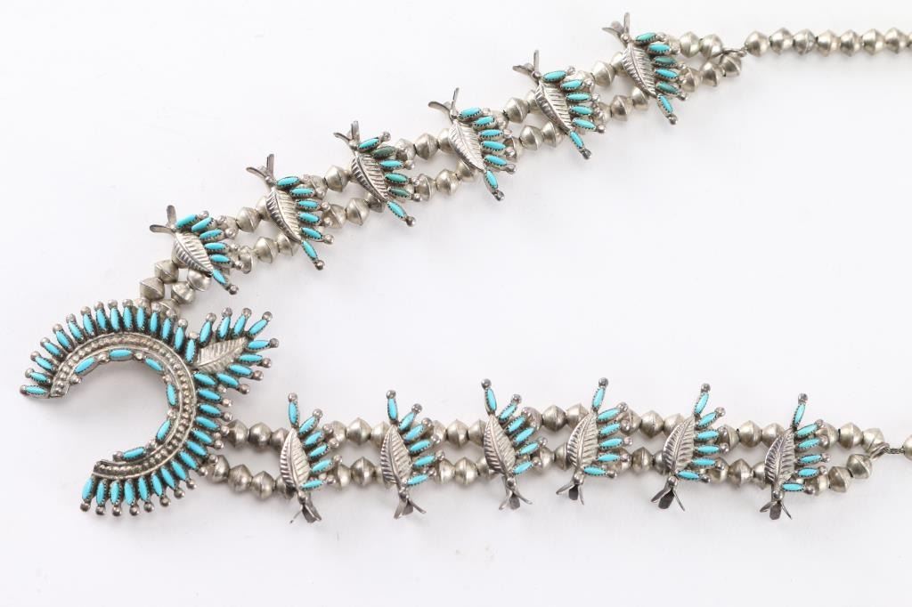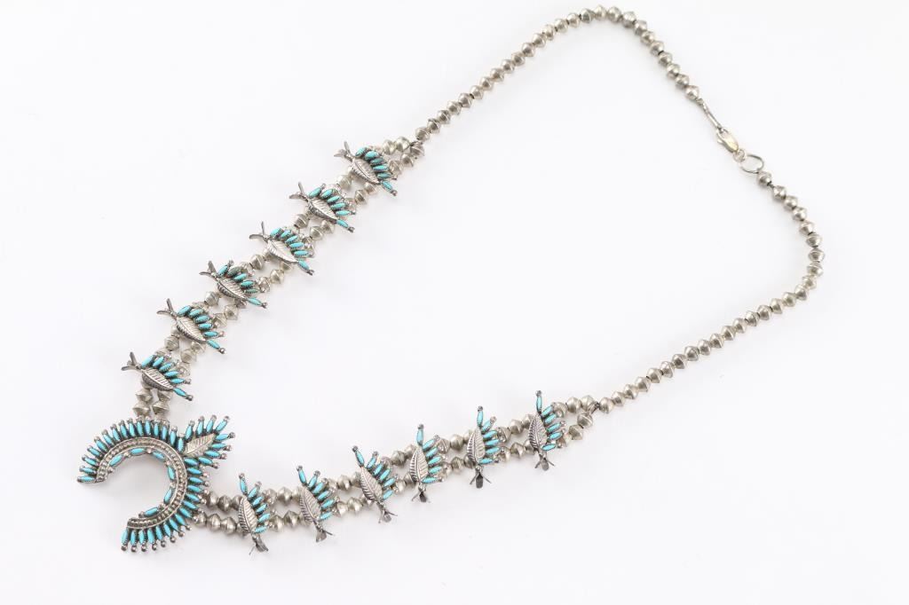 Lot 603 Petite Point Turquoise Squash Blossom.