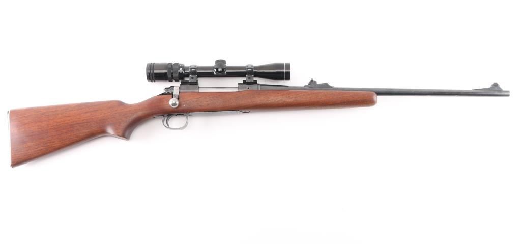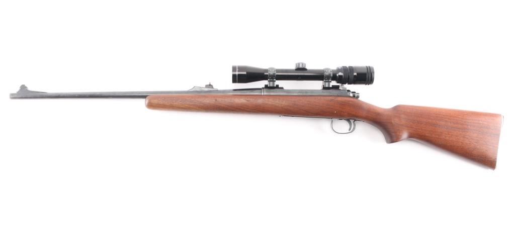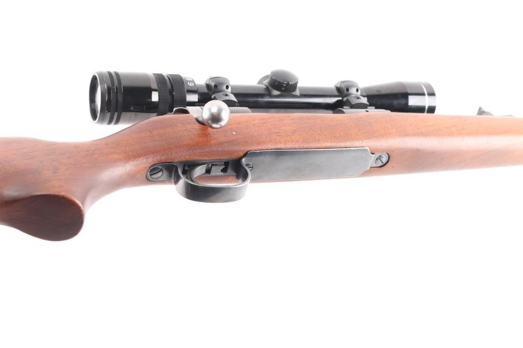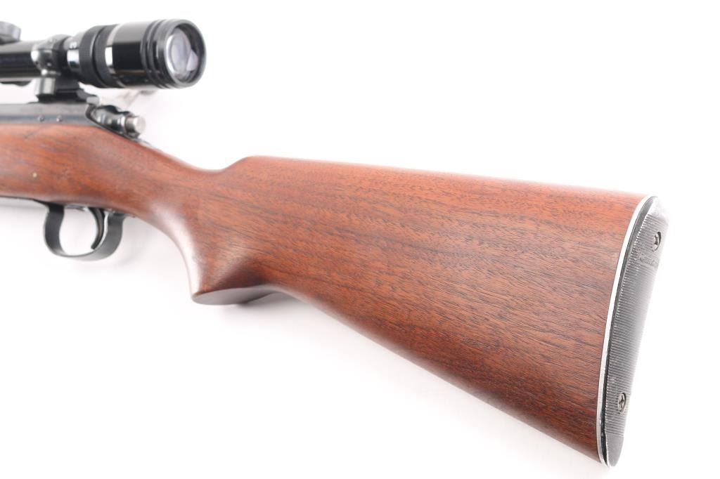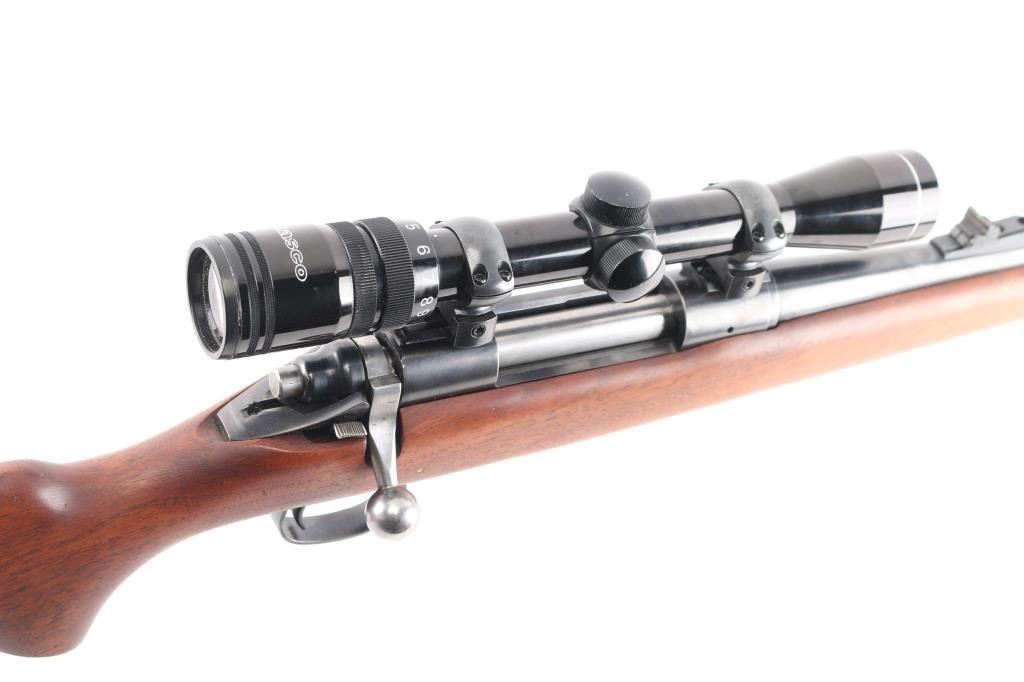 Vintage bolt action rifle circa 1961. Features blued finish, bright metal bolt, smooth wood stock, no cheekpiece, serrated aluminum Remington buttplate, 22" barrel, ramped base front sight with bead insert, sliding U-notch rear sight, Mounted with a Tasco 3-9x32 scope , very good condition, clear optics, fine crosshair reticle, manual safety. Bore is excellent/bright. Retains 95% original blue, edge losses. muzzle wear. Wood is sound, very good condition with some very minor scratches. Polished bolt. A great conditioned rifle for its age. Condition is NRA Very Good. C&R Firearm.