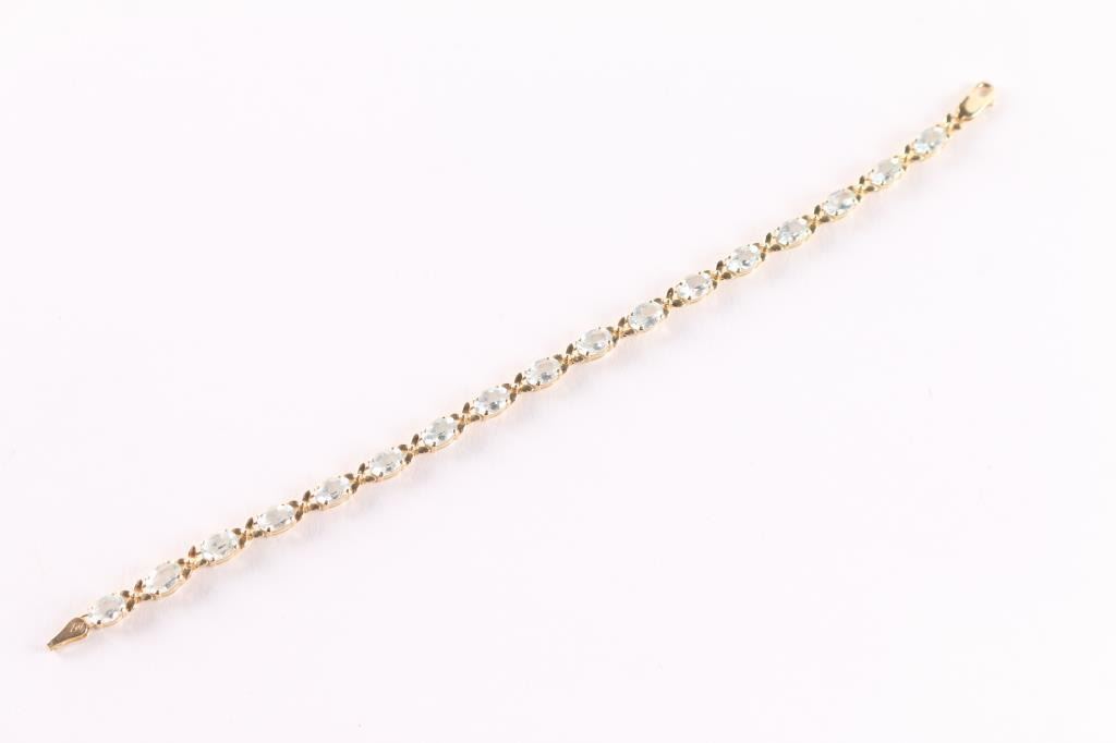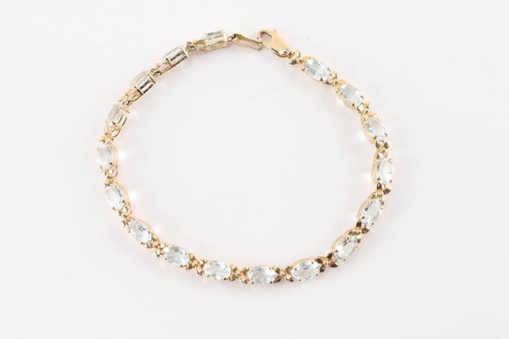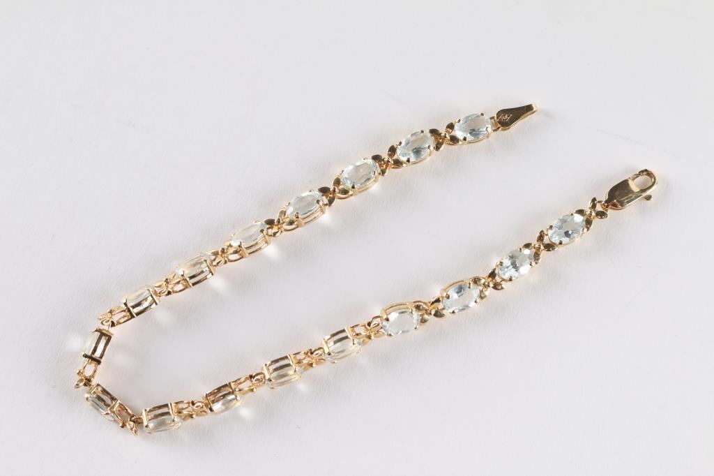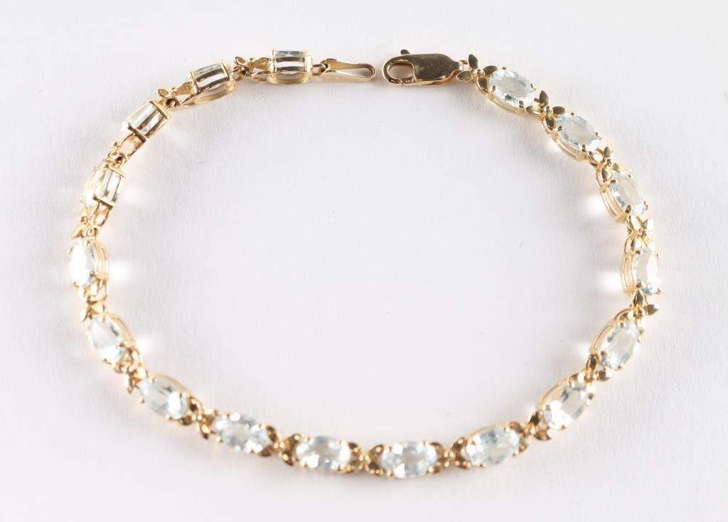 Oval Cut Aquamarines Set In 14kt Yellow Gold In Between Stones It Has A Floral Motif, Very Pretty And Demure.