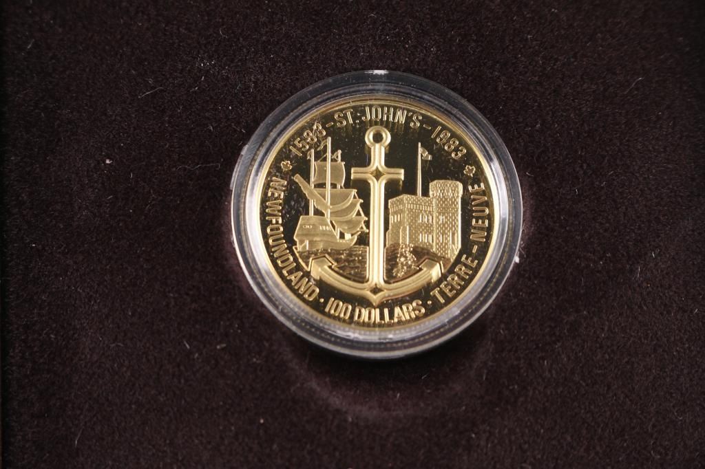1983 - $100 Canadian 400th Anniversary Gold Proof Coin. 22k - 91.66% gold, 8.34% fine silver. Minted Royal Canadian Mint.