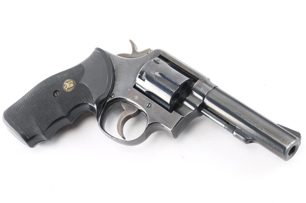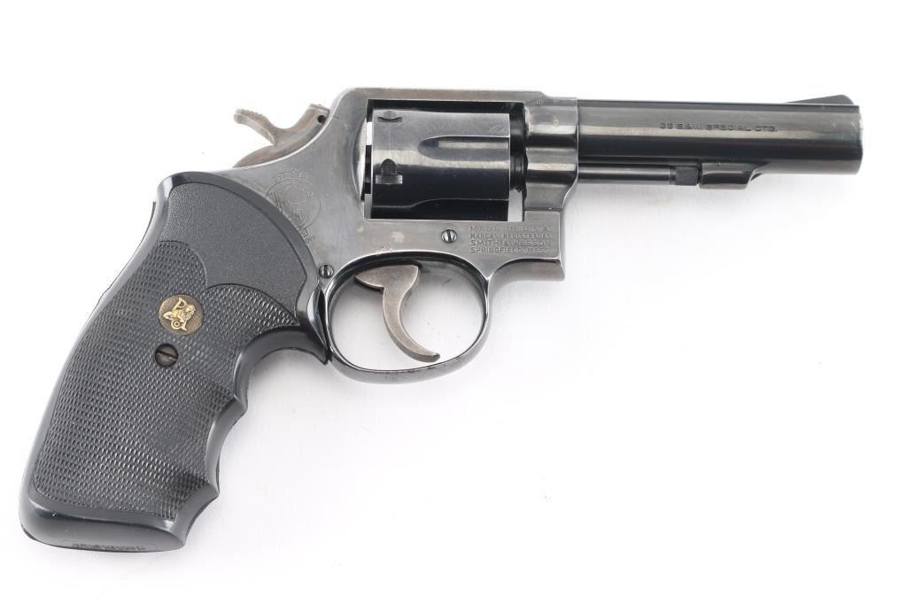 c.1979 Blued finish,4" revolver with heavy BBL and Pachmeyer grip. Police marking ground off left side of frame. 60-80% blue with holster wear, carry and duty use. Good action and bore. (Hill St. Blues era).Condition is NRA Good.*** Modern Firearm ***