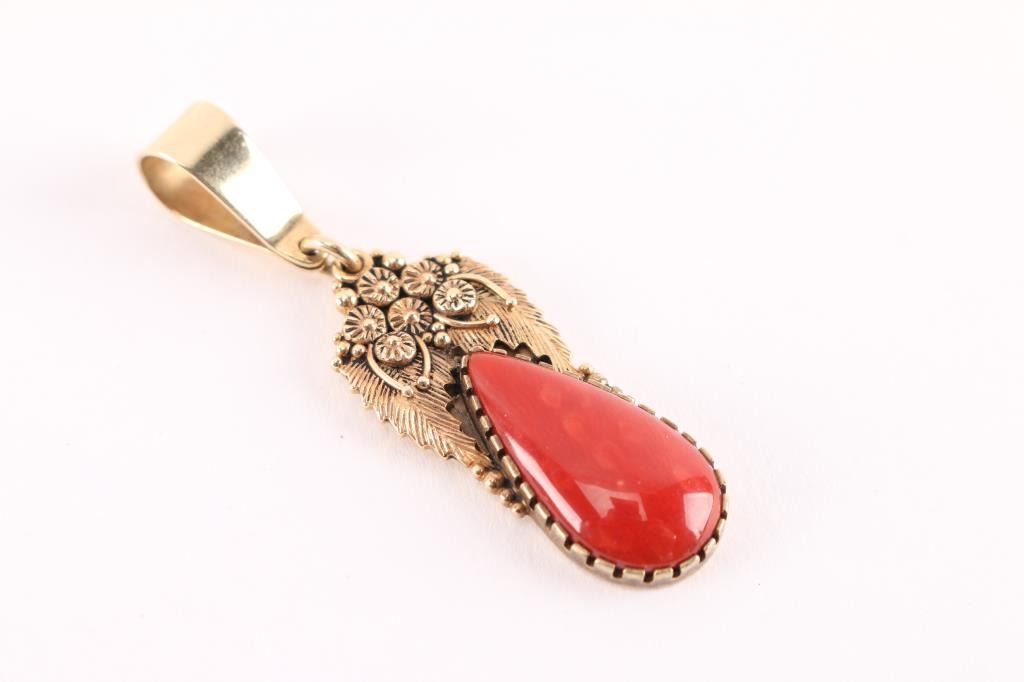 Lot 771 Richard Tsosie Coral & 14kt Pendant