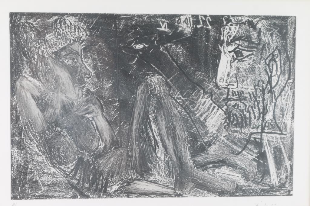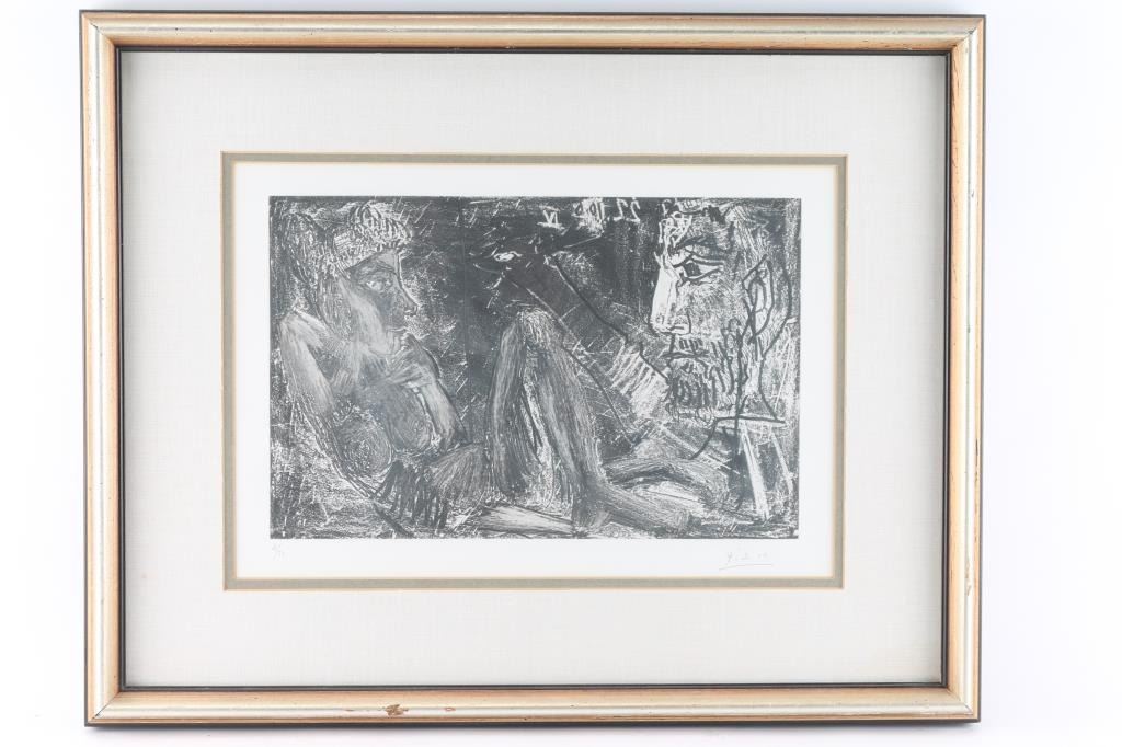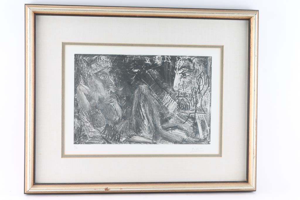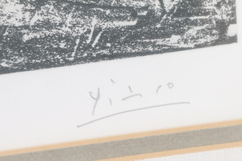 Titeled "Peintre et demi-figure et modèle au chignon". Numbered 31 of 50 by Picasso. Signed. 15" x 9.5"
