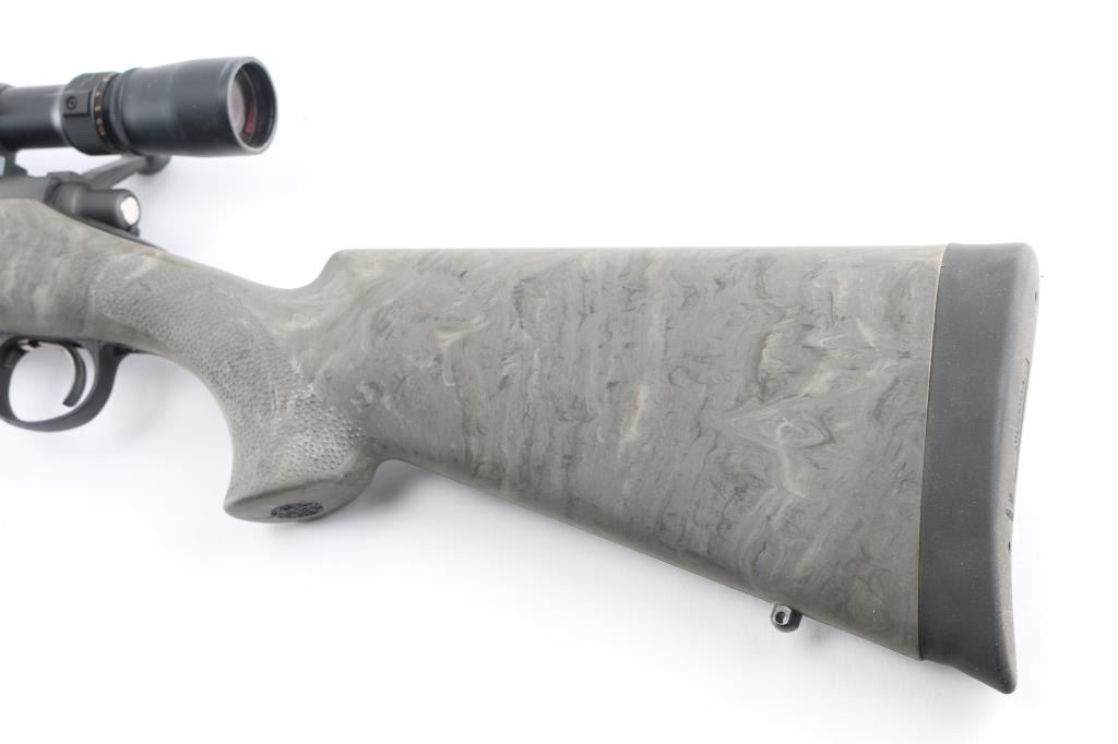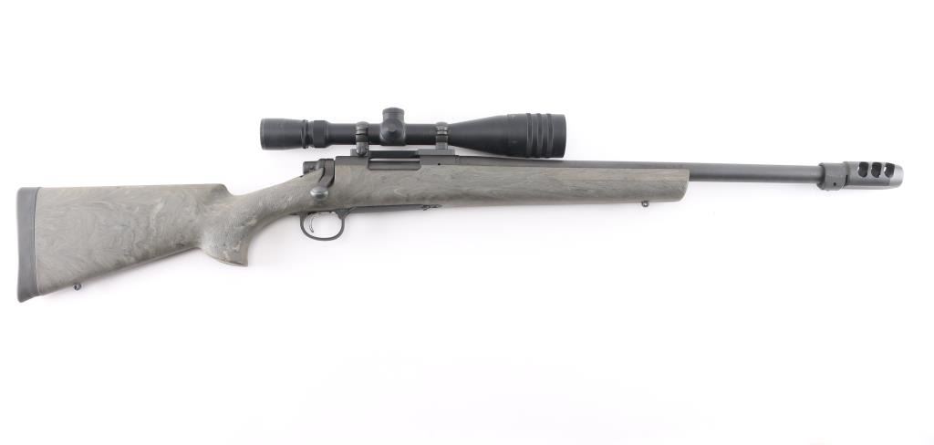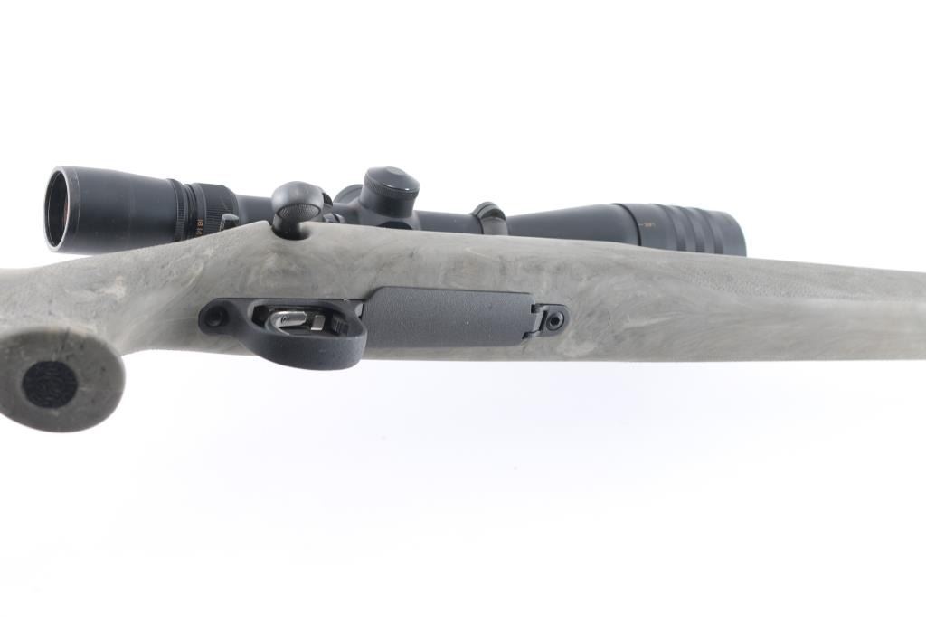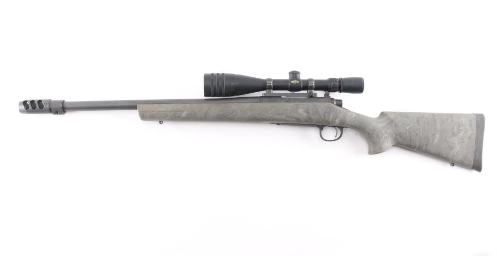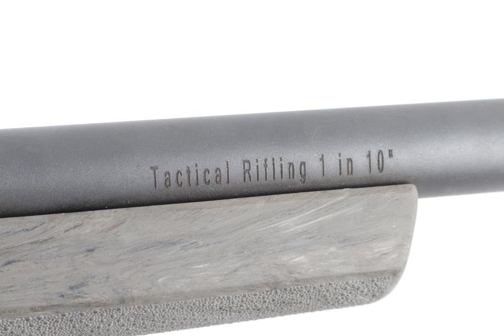 Bolt-action rifle, featuring a 22 3/8" heavy barrel with muzzle break, 1:10" twist rate, 5/8-24 threaded muzzle for attaching suppressors and other devices, mounted Weaver 4-16 X 42 scope. Utilizes a short action and comes with a Hogue overmolded Ghillie Green stock, X-Mark Pro smooth curved trigger, adjustable to a 3.5-pound pull weight. Bore is pristine with strong rifling, action is smooth. Retains approx. 98% matte black finish with small scratches at muzzle, stock is excellent with little to no wear. Scope is clear. Comes with factory box. NRA Condition is excellent.***Modern Firearm***