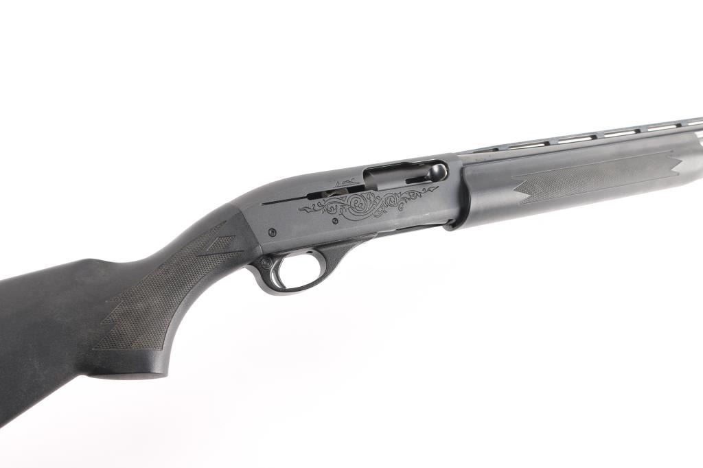 20 Ga. Shotgun. Semi-Automatic. Gas-Operated. Blued barrel, parkerized receiver. 28" barrel with vented rib, white sighting bead, steel mid-bead. 2 3/4" chamber. M choke installed. 4-rd tube magazine. Push button safety. Bottom loading, side ejecting. Floral scroll designs on receiver. Bore is excellent. Action is crisp/tight, finish is excellent with a couple of very minor scratches. Checkered black polymer stock and forearm are excellent. Black solid factory recoil pad. LOP-13 1/2".NRA Condition-Excellent. Modern Firearm.